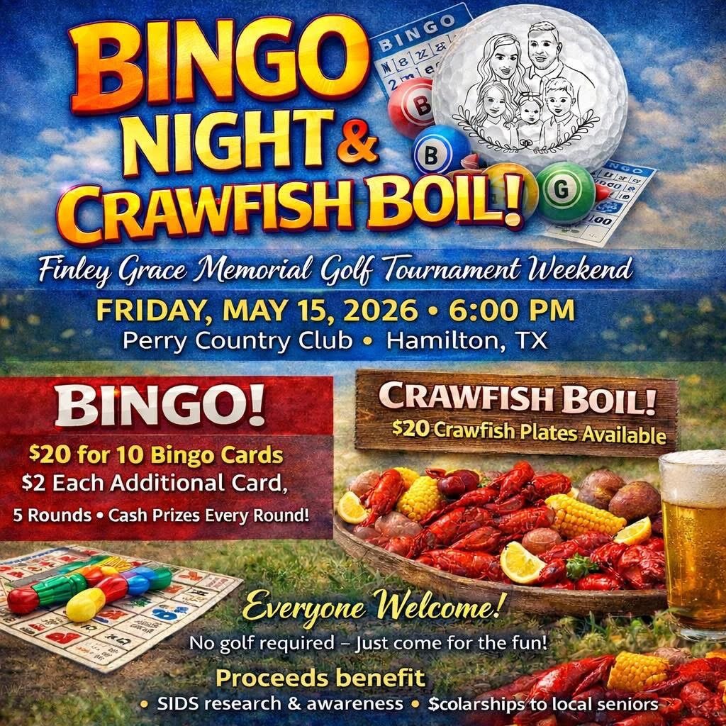 Join us as we kick off the Finley Grace Memorial Weekend with a night of crawfish, bingo, and community—all supporting SIDS research.